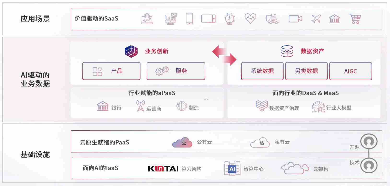 数字时代,,,,围绕企业数字化转型的关键要素,,NG大舞台数码开创性的提出数云融合战略和技术体系框架,,,,着力在云原生、、、、数字原生、、AI原生和信创产业上架构产品和服务能力,,,为处在不同数字化转型阶段的快消零售、、、、汽车、、、、金融、、医疗、、、、政企、、、、教育、、运营商等行业客户提供泛在的敏捷IT能力和融合的数据驱动能力,,,构建跨界融合创新的数字业务场景和新业务模式,,助力企业级客户建立面向未来的核心能力和竞争优势,,全面推动社会的数字化、、、、智能化转型升级。。。